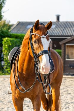 Born: 2018 Sexe: Gelding Colour: Chestnut Height: 16.3 hsNochino (paspoort name Normando) is a 7 years old gorgeous uphill built gelding. Chestnut with lots of white. 16.3 hs.