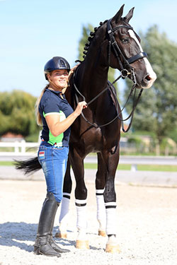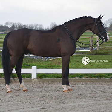 Gravity is a gorgeous uphill built type of horse with very good gaits. Easy and safe to ride and comfortable to sit. Beautiful halfpasses and lots of ability to collect. Competitive horse and suitable for amateur rider. Nice extensions. Great start for pirouettes. Great ground manners and no vices. Sire: Rhodium